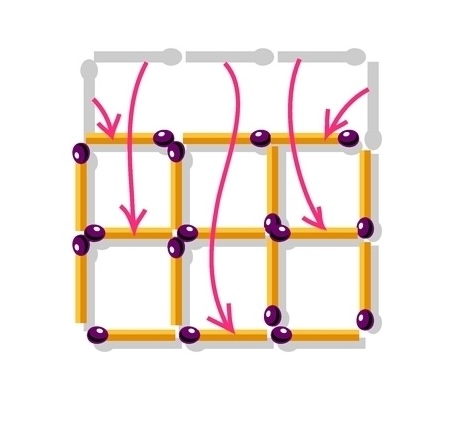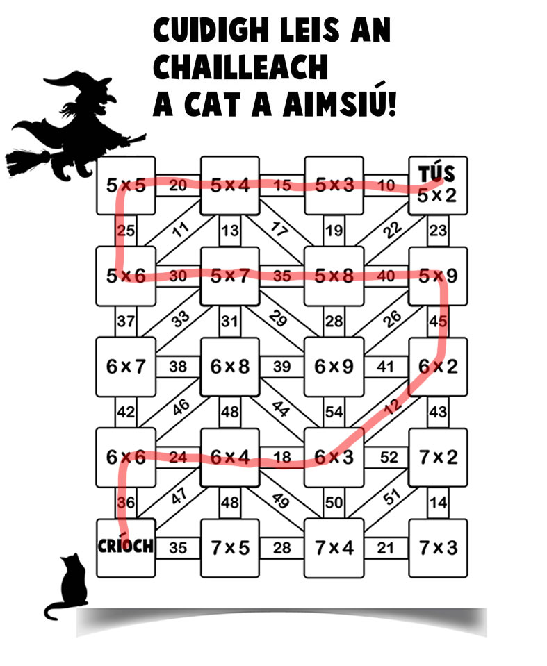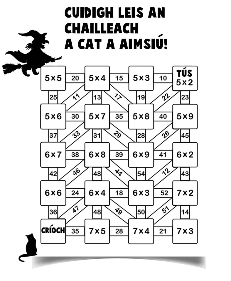 Cá mhéad cearnóg a thig leat a dhéanamh mura mbogann tú ach 3 chipín?