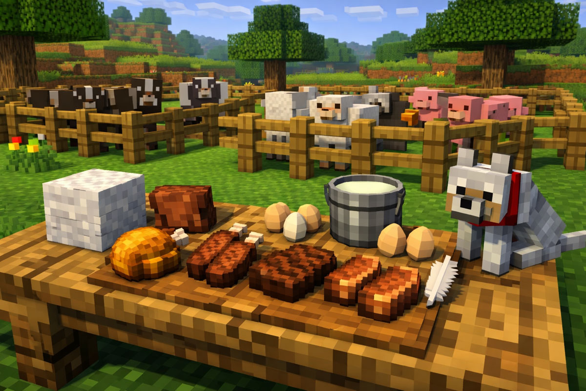 Ar na móibeanna is clúití atá ag Minecraft – tá a gcuid ainmhithe. Tá ainmhithe feirme ann, amhail ba, muca, caoirigh agus sicíní. Bíonn na hainmhithe seo úsáideach nó cuidíonn siad leat agus tú ag imirt (agus thig leat iad a ithe fosta)! Tá ainmhithe eile ann amhail mic tíre agus cait. Thig leat na mic tíre a cheansú, ansin, leanann siad thart thú agus cosnaíonn siad thú ar na móibeanna míchairdiúla.