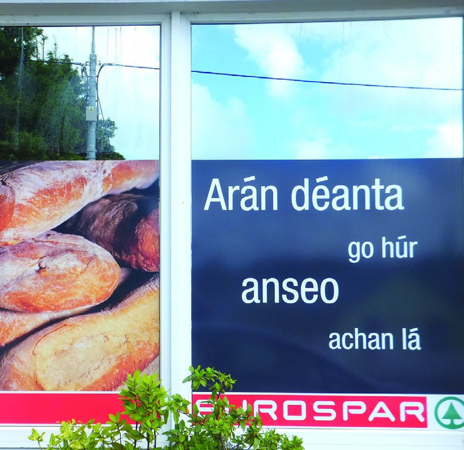Cá mbeadh muid gan arán? Is fearr leathbhuilín a bheith againn ná arán ar bith, go cinnte! (Siopa i nGort an Choirce, Dún na nGall)