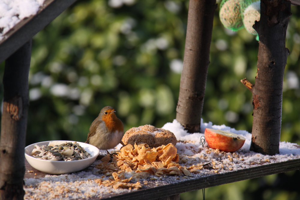 Is maith an rud é bia a chur amach dóibh i do ghairdín, go háirithe má bhíonn an aimsir sioctha, mar bíonn sé níos deacra orthu teacht ar go leor bia i lár an gheimhridh.
