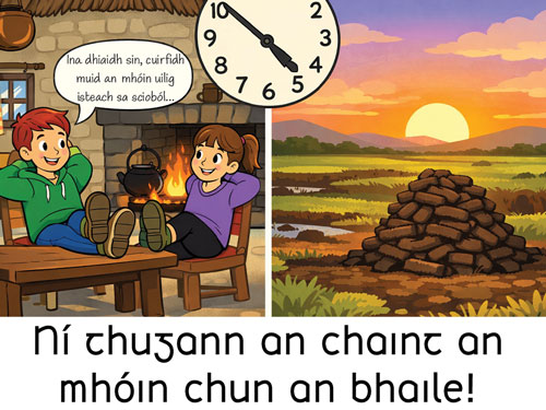 Teideal: Ní thugann an chaint an mhóin chun an bhaile*!