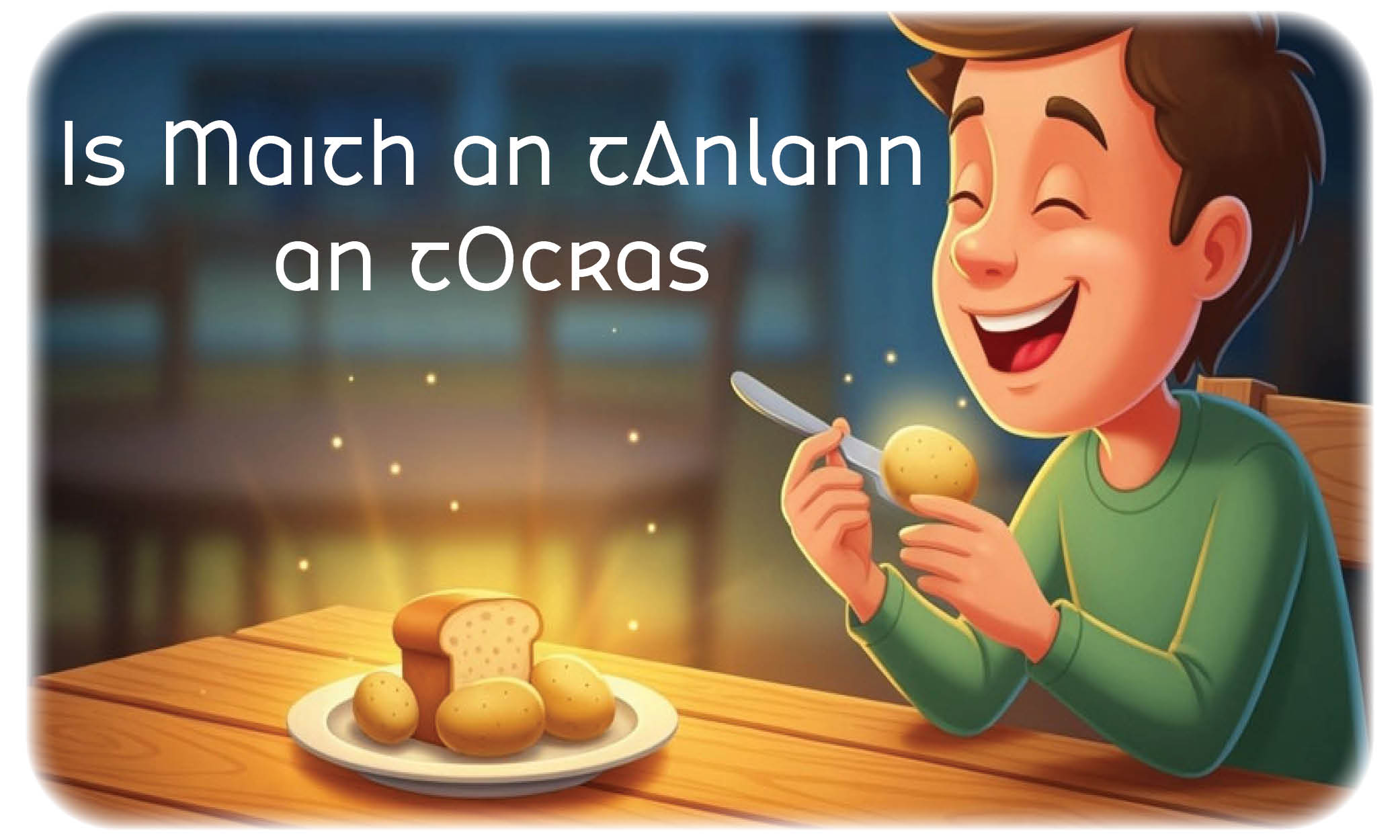 Is é an chiall atá leis an seanfhocal seo ná, ‘má tá tú ocrach go leor, ní bheidh anlann de dhíth ort ar do chuid bia – íosfaidh tú rud ar bith!’