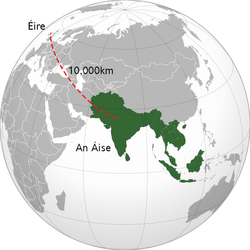 🐝 Dá mbeifeá ag taisteal i gcarr, faoi mheánluas de 70km san uair, cá fhad a thógfadh sé ort taisteal idir an dá áit?