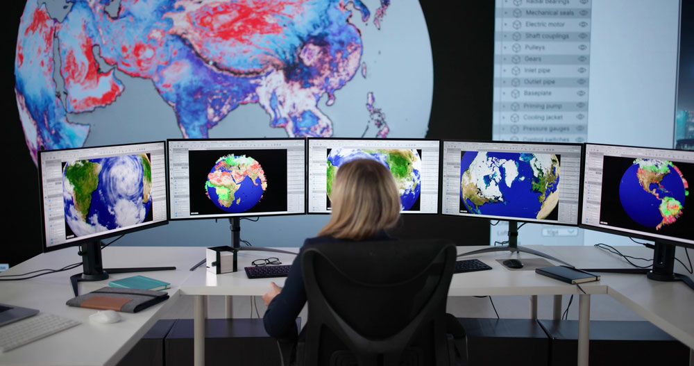 Cuireann satailítí sa spás eolas agus pictiúir ar ais chuig na meitéareolaithe ar domhan