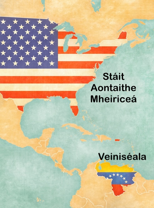 Ní maith le Donald Trump, Uachtarán na Stát Aontaithe, an rialtas atá i gceannas ar Veiniséala. Chomh maith leis sin, tá a lán ola ag Veiniséala agus ba mhaith leis í a bheith aige. Mar sin, ar an 3ú Eanáir, rinne fórsaí na Stát Aontaithe ionsaí ar an tír agus thóg siad an tUachtarán, Nicolás Maduro. Tá sé anois á choinneáil i Nua-Eabhrac agus cuireadh os comhair cúirte é. Ba mhaith le Trump go mbeadh tionchar níos mó aige ar rialtas Veiniséala agus bhagair sé tuilleadh ionsaithe mura n-éisteann an rialtas leis.
