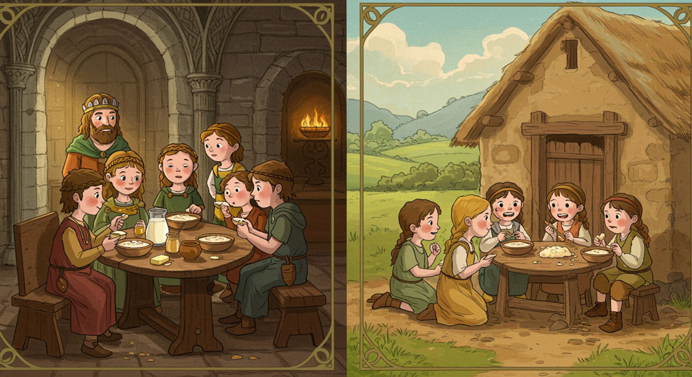 🥣 Fuair páistí na ndaoine tábhachtacha (páistí na gceannairí agus na dtaoiseach) brachán déanta as cruithneacht, bainne, im úr agus mil.
