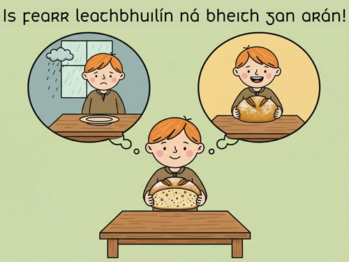 Teideal: Is fearr leathbhuilín ná bheith gan arán!